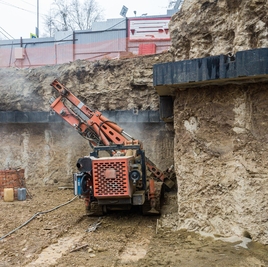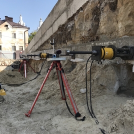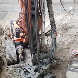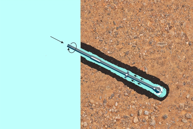 Бурение производится на цементном растворе с последовательным соединением винтовых анкерных штанг до достижения необходимой глубины скважины